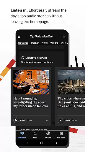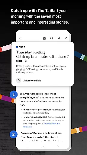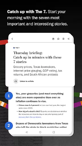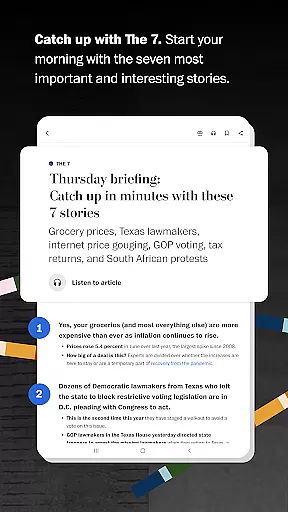 The Washington Post app stands out with its diverse range of features designed to enhance your news consumption experience. Its 24/7 news feed keeps you constantly updated, while The 7 delivers a concise yet comprehensive morning briefing. Customizable alerts ensure you're always the first to know when significant news breaks, tailored to your interests.