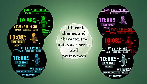 Wasteland Gear stands out with its extensive customization capabilities and practical survival features. Users can personalize their experience by choosing from six unique characters, including the iconic Pyjama Reaper and the tactical Longcoat Operative, each bringing a distinct personality to your watch face.