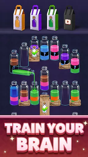 Water Match is a casual puzzle game that combines brain training with sensory relaxation. The core gameplay revolves around sorting colorful water into matching bottles, creating an engaging experience that sharpens observation skills and logical thinking. With its vibrant visuals, soothing sound effects, and satisfying animations, the game offers both mental stimulation and stress relief.