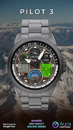WB PILOT 3 Animated Watch Face brings the thrill of aviation to your smartwatch by offering an immersive cockpit experience with its remarkable graphics and animations. Compatible exclusively with Wear OS 5 and higher, this hybrid watch face combines both digital and analog timekeeping, catering to diverse user preferences. With features like animated elements such as Turn Coordinator and Altitude Indicator, users can enjoy a realistic pilot experience while accessing practical information like local and UTC time, battery status, and health metrics.