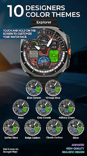 This watch face stands out through its customizability and attention to detail. Users can choose from 10 unique skins and access various data points including steps, heart rate, and weather updates. The animated radar, while purely aesthetic, adds a touch of sophistication, serving as a second hand. Additionally, the automatic temperature unit adjustment ensures seamless integration with your device settings, providing convenience without manual intervention. Whether you're an aviation enthusiast or simply looking for a dynamic watch face, WB PILOT 3 offers both style and functionality.