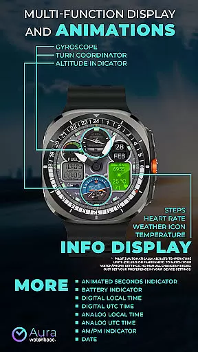 WB PILOT 3 Animated Watch Face boasts an array of distinctive features designed to enhance user experience. One of its standout characteristics is the inclusion of animated elements like the Turn Coordinator, Altitude Indicator, and Gyroscope, which mimic real cockpit instruments. These animations not only provide visual appeal but also create an engaging user interface that sets it apart from static watch faces. Furthermore, the hybrid display allows users to view both digital and analog time formats simultaneously, catering to different preferences and increasing usability.