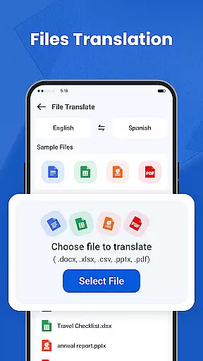 The document translation tool supports various file formats like PDF, Word, and Excel, catering to office and academic requirements. Personalized settings allow customization of language options and voice reading speed, enhancing user experience.