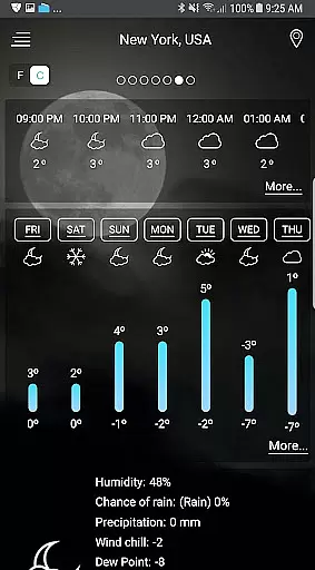 One of the standout features is the app's ability to offer localized weather alerts three times a day, alongside storm warnings and rain notifications. Users can track weather conditions in multiple locations, making it an ideal tool for travelers or those managing operations across different regions. The inclusion of sunrise and sunset times, moon phases, and moon cycles further enriches the user experience by catering to diverse informational needs.