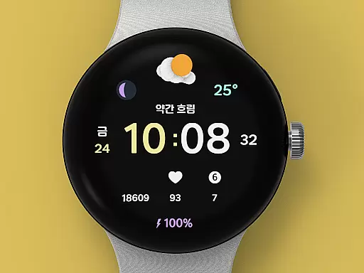 Dynamic weather watch face with glass effect, bold time & 7 complications.