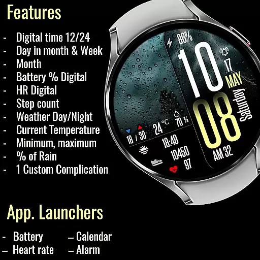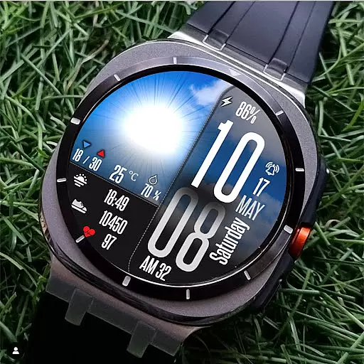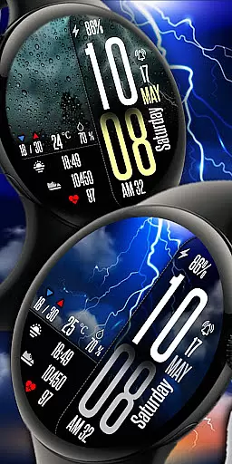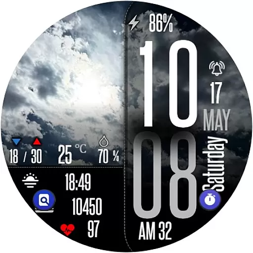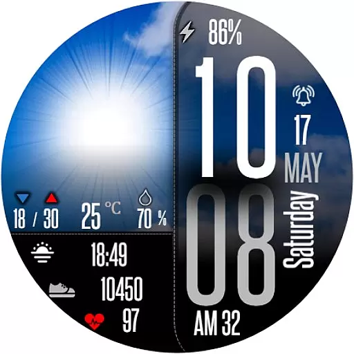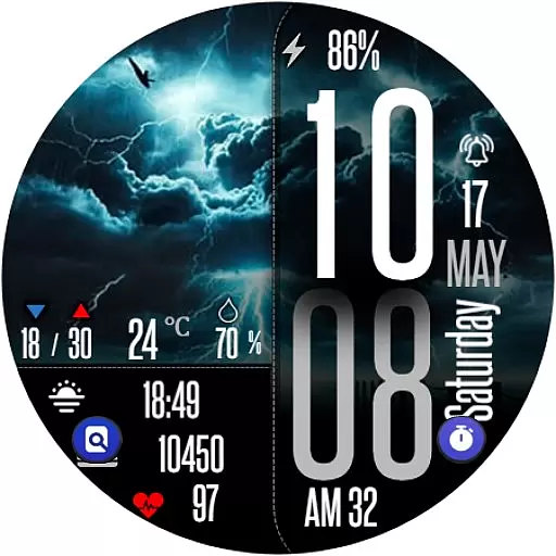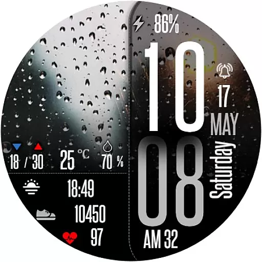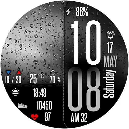 Perfect for individuals who need quick access to weather forecasts and personal metrics throughout the day, this app combines functionality with bold aesthetics to enhance your smartwatch experience.