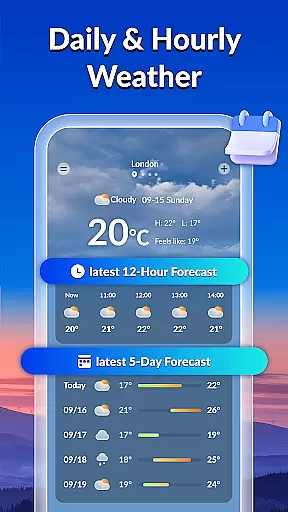 In addition to real-time updates, the app includes daily and hourly forecasts, providing granular insights into upcoming weather patterns. Users can also explore more detailed weather metrics such as temperature, humidity, and wind speed. These features collectively enhance the user's ability to plan effectively, whether for outdoor activities or managing risks associated with adverse weather conditions.