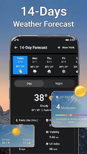In addition to its core functionality, Weather Live provides an hourly forecast for the current day and extends its predictions up to 14 days ahead. This allows users to plan their schedules effectively while considering potential weather changes. Whether it's preparing for extreme conditions or deciding on appropriate attire, this app has got you covered.