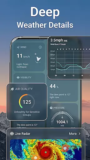 Weather Live is a comprehensive weather application designed to provide users with accurate and real-time weather information. The app offers detailed forecasts for temperature, precipitation, wind, air quality, sunrise/sunset times, and UV index. It ensures that users are well-prepared for their daily activities by delivering essential weather data at their fingertips.