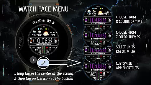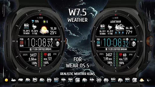 Whether you're commuting, working out, or planning your day, Weather Watch Face W7.5 ensures you're always prepared with critical weather and health insights directly on your wrist.