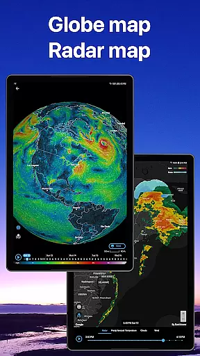 In addition to extended forecasts, the app integrates advanced mapping technologies like NOAA and RainViewer. These tools enable users to visualize weather patterns on a global scale through interactive 3D Earth models and real-time radar imagery.