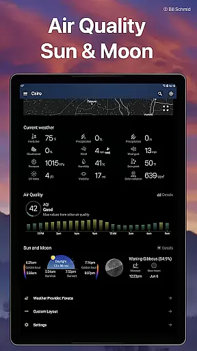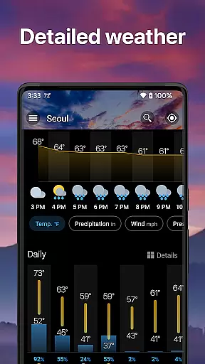 Weawow stands out with its unique combination of professional-grade weather data and artistic photography. The app aggregates information from top meteorological organizations like NOAA, DWD, and Meteo France, ensuring precise and reliable weather forecasts. Users can access detailed weather parameters including temperature, wind speed, UV index, and air quality, all presented alongside stunning visuals.