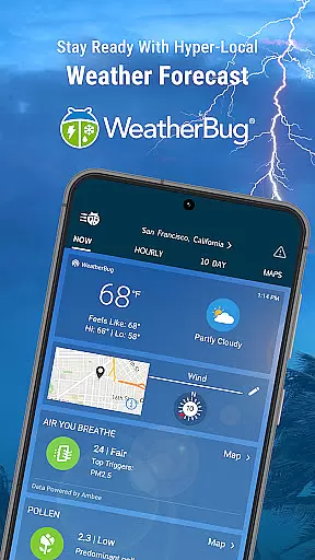 WeatherBug is a comprehensive weather application that provides reliable and detailed weather forecasts. With over 20 map layers, including radar and severe storm risk information, the app ensures users are well-prepared for any weather condition. It offers real-time lightning alerts, air quality data, and hurricane outlooks, making it an essential tool for staying safe and informed.