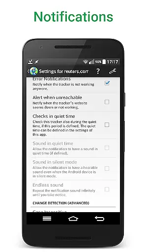 In addition to parallel checks and text filtering, the app allows users to monitor numerical changes, such as product prices, and define time ranges without checks or notifications. Advanced filtering options enable change notifications based on the presence or absence of certain keywords, while SSL certificate problem handling ensures uninterrupted monitoring.