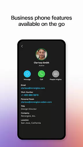 The Call capability integrates essential telephony features directly into the app, allowing users to make business calls from anywhere. Features like visual voicemail and instant call initiation enhance accessibility and convenience.
