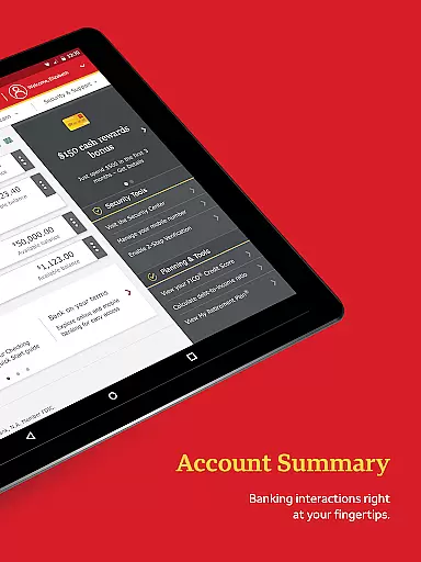 Beyond simple transactions, the app supports bill payments and investment tracking, allowing users to monitor balances, holdings, and account activity. Real-time quotes, charts, and market data further enhance the transaction experience by keeping users informed about their investments.