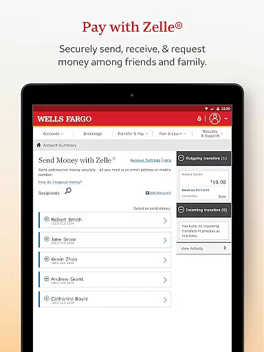 Users can transfer funds effortlessly between their Wells Fargo accounts and other financial institutions, subject to terms and conditions. The integration of Zelle within the app enables users to send and receive money quickly using just a U.S. mobile phone number or email address, streamlining the payment process.