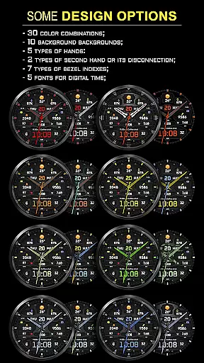 The WFP 134 Hybrid watch face stands out with its rich array of features that cater to diverse user needs. One of its most notable aspects is the wide range of customization options available. Users can choose from 8 different complications, 30 color combinations, 10 backgrounds, and 5 types of hands, allowing for a personalized and unique watch face every time.