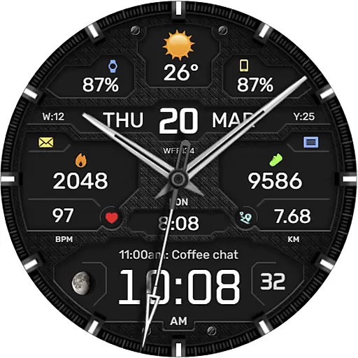The WFP 134 Hybrid watch face is a versatile and stylish wearable application designed for smartwatch users who value both aesthetics and functionality. This sophisticated watch face not only enhances the visual appeal of your device but also provides essential features such as detailed weather forecasts, health monitoring, and activity tracking.
