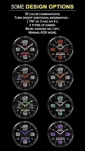 With 8 different complications and 30 color combinations available, users can extensively customize their watch faces. The inclusion of 4 types of hands, weather forecasts, and high-resolution displays ensures that users receive both detailed and visually pleasing information. Furthermore, the app's high optimization results in low battery consumption, making it an efficient choice for everyday use.