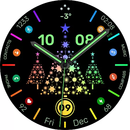 The watch face boasts high optimization and low battery consumption, making it suitable for various devices without compromising performance. Its high-resolution display capabilities ensure that the intricate details of the Christmas tree designs appear crisp and vibrant on different screen sizes and resolutions.