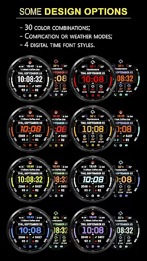 WFP 345 Informer watch face boasts an impressive array of features designed to enhance user convenience and device personalization. With 8 selectable complications, users can access critical information at a glance, such as weather updates, health metrics, and more. The inclusion of 30 color options and 4 time font styles ensures that the watch face matches individual preferences while maintaining clarity and readability.