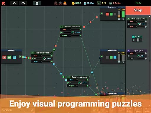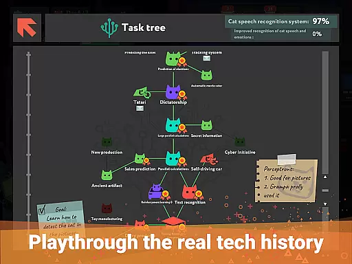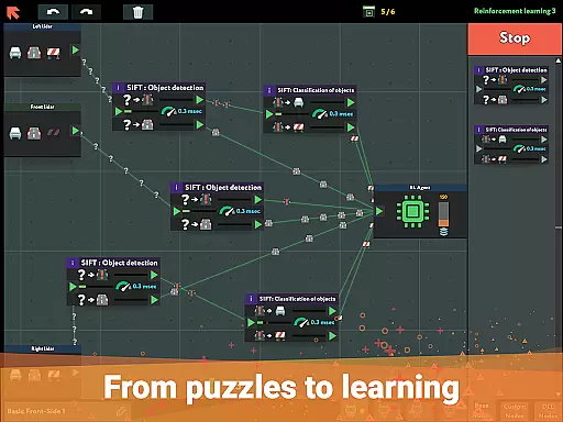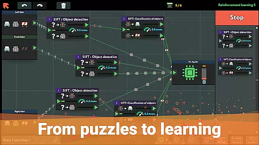 The game includes simulations of real-life machine learning technologies, ranging from basic Expert Systems to advanced Recurrent Neural Networks capable of predicting future outcomes. These simulations are presented in an engaging puzzle format, where players can experiment, fail, optimize, and ultimately succeed in creating functional data flow systems. Each success brings a rewarding sense of achievement and progress.