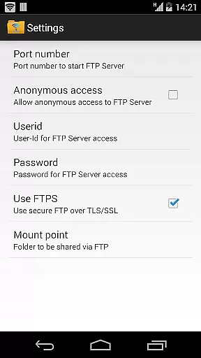 The app allows extensive customization options, including setting a unique port number, configuring anonymous access permissions, and defining a home folder as the root directory for file sharing. Additionally, users can set personalized usernames and passwords, adding another layer of security to their FTP server.
