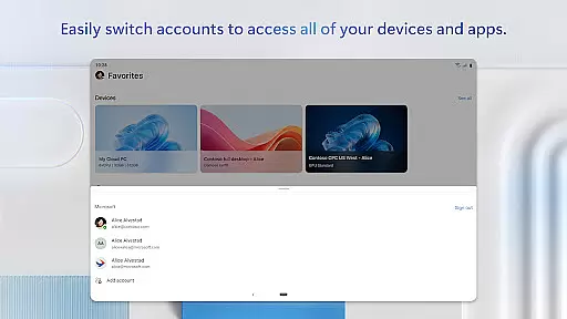 This application supports multiple remote services such as Azure Virtual Desktop, Windows 365, and Microsoft Dev Box. These integrations allow users to access their complete desktop environments from Android devices, facilitating real-time collaboration on projects and documents.
