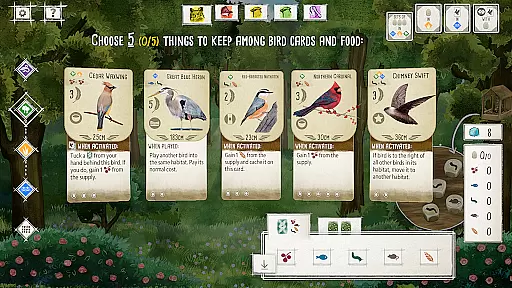 The digital version of Wingspan preserves the core mechanics of the original game, such as bird card activations and habitat management. Players will find that each action they take, whether it's laying eggs or drawing new bird cards, adheres strictly to the established regulations of the board game, providing an authentic experience.