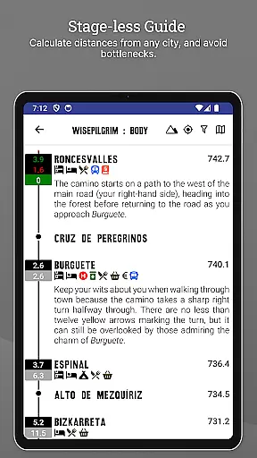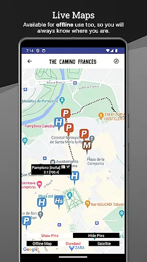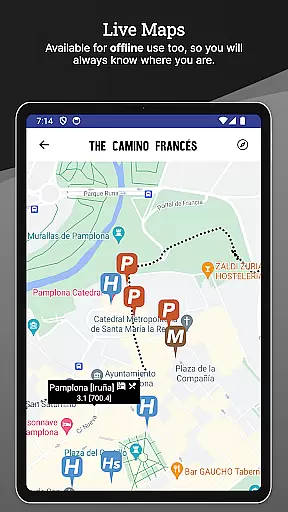 The app offers an extensive offline directory of accommodations including albergues, hotels, and rural houses, along with detailed maps and photos of points of interest. Its unique features like the scrollable elevation map and stageless guide help pilgrims plan their journey without anxiety. Additionally, users can leave tips and read comments from fellow travelers, creating a supportive community on the go.