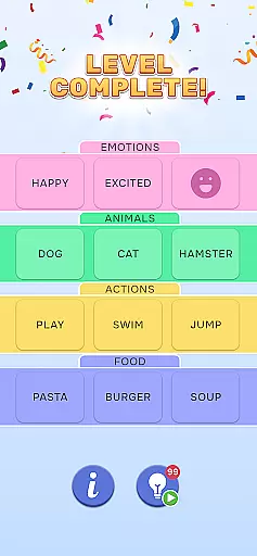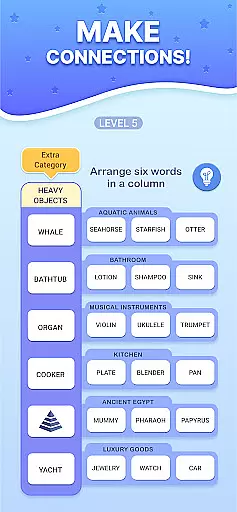With beautifully designed categories and clever associations, the game presents hundreds of levels full of interesting word combinations. As players advance, they encounter increasingly complex puzzles that require more than just a rich vocabulary.