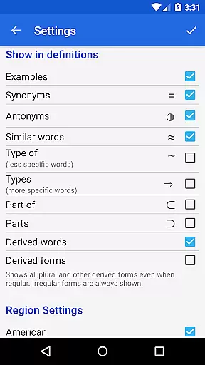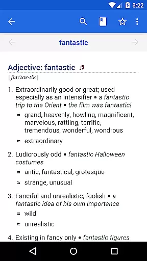 The app's search capabilities are robust, offering alphabetical listings, pattern-matching searches, and filters by word type. These features make navigating the vast database seamless. Moreover, users can drill down on any word within a definition, bookmark important entries, and review their search history, ensuring an efficient and personalized reference experience.