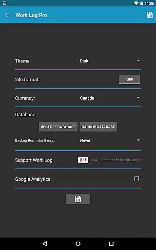 Work Log Pro boasts an array of features that cater to diverse user needs. One of its key strengths is the ability to customize nearly every aspect of the time tracking process. Users can choose between light and dark themes, display times in 12-hour or 24-hour formats, and select currency symbols from over 100 countries. The app also allows setting reminders for regular backups and configuring pay periods by weeks, months, or half-months.