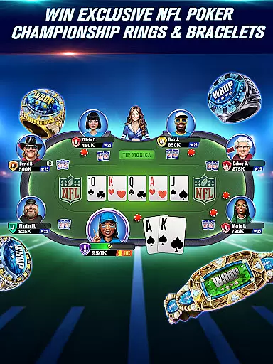 WSOP Poker: Texas Holdem Game is the ultimate poker experience for card game enthusiasts. This app brings the excitement of the World Series of Poker to your mobile device, allowing players to compete in various poker formats including Texas Hold'em and Omaha. With exclusive NFL-themed tournaments, collectible items like rings and bracelets, and daily challenges, the app offers a comprehensive poker experience.