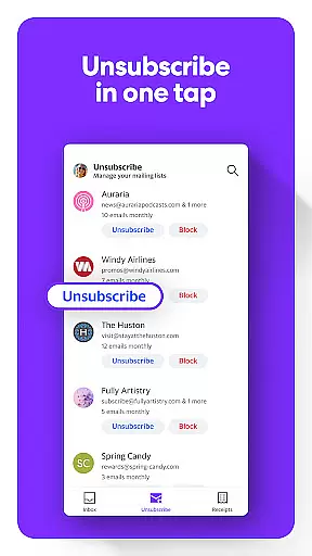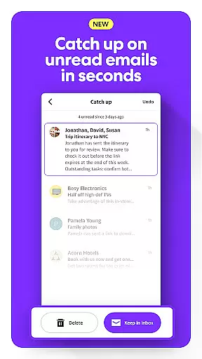 Yahoo Mail stands out with its comprehensive feature set tailored for efficient email handling. The app's 'Catch Up' feature lets users quickly process unread emails through an intuitive, gamified interface. Its robust junk mail management allows bulk deletion by sender and easy unsubscribe options.