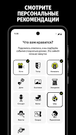 Yandex Afisha is a comprehensive events platform designed to help users plan their leisure time and purchase tickets for various activities. The app consolidates events from across your city and the entire country, offering a one-stop solution for cinema outings, concerts, theater performances, museum visits, and more.