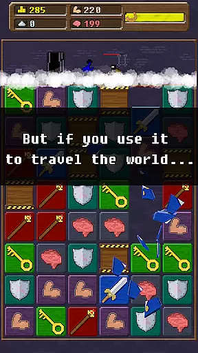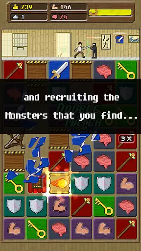The game features a compelling combination of RPG elements and fast-paced puzzle matching. You must strategically slide rows or columns of tiles on a 6x8 grid while simultaneously running through dungeons. The procedural generation system ensures that each dungeon run feels unique, with random modifiers keeping the gameplay fresh.