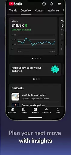The app's intuitive interface allows users to make real-time adjustments to video details, update channel aesthetics, and even apply for the YouTube Partner Program to monetize their content. Whether you're a beginner or an established creator, YouTube Studio ensures you maintain complete control over your channel while providing valuable insights into viewer behavior and content performance.