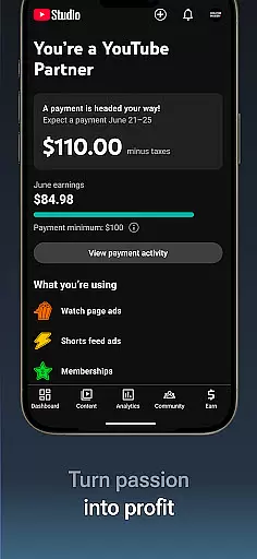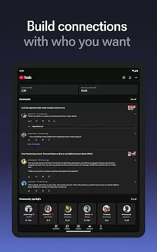 Another notable feature is the advanced comment management system, which allows sorting and filtering to prioritize important conversations within the community. Additionally, users can modify video details, update thumbnails, and adjust channel settings on-the-go. The app also streamlines the process of applying for the YouTube Partner Program, making it easier than ever to start earning revenue from your creative efforts.
