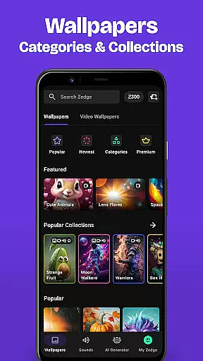 Zedge Wallpapers & Ringtones is a premier personalization app that offers an extensive library of HD and 4K wallpapers, live wallpapers, and parallax wallpapers alongside a vast selection of ringtones, alarm sounds, and notification tones. With the unique Zedge AI Generator, users can create custom wallpapers based on their imaginative descriptions.