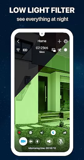 Additional notable features include night vision mode with green screen filtering, adjustable lighting options, and two-way audio communication. The multi-platform support and ability to monitor multiple rooms simultaneously make it an ideal solution for comprehensive home security management.