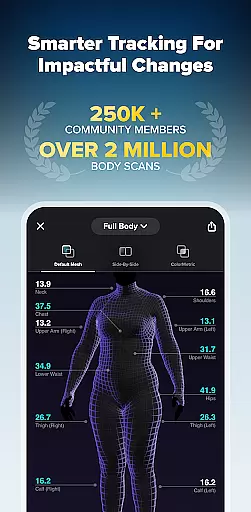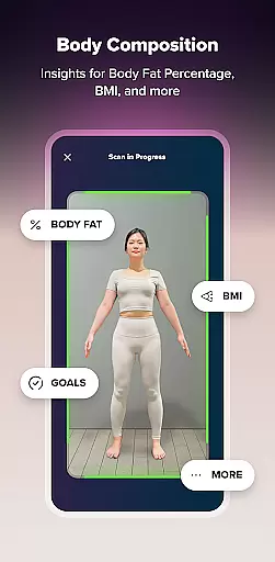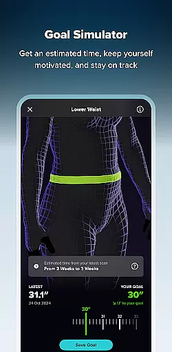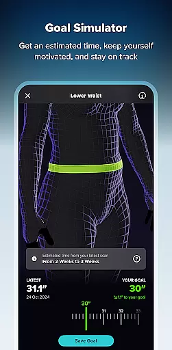 The app's 3D body scanning feature provides detailed measurements for twelve key body areas, forming the basis of a personalized fitness plan. By setting specific goals for different measurement areas, users can work towards targeted body composition changes. The Goal Simulator enhances this by allowing users to visualize potential changes, making the planning process more engaging and realistic.