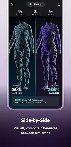 In addition to ColorMetric, ZOZOFIT includes a Side-by-Side comparison tool. This feature enables users to view two different body scans simultaneously, facilitating a closer evaluation of their fitness progress. Users can visually assess changes in their physique, helping them stay focused and motivated.