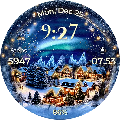 Animated Wear OS Watch Face - Festive Winter - Christmas at the North Pole